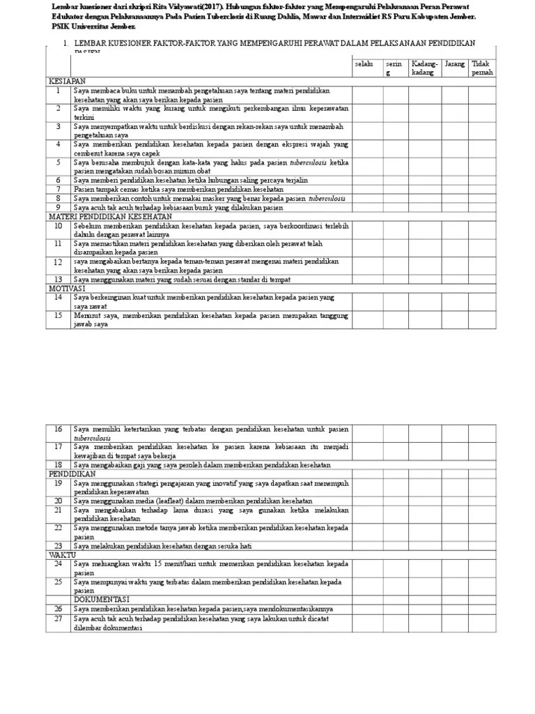 Menggunakan kuesioner dengan daftar pertanyaan sebagaimana terlampir dalam.